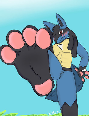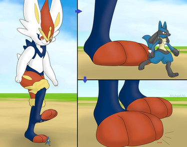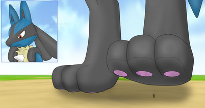 - colored and improved version -Lucario's trainer found himself in shrunken size and tried to seek help from his friend by climbing onto his foot to get his attention. Lucario sees his micro trainer on top of his foot and out of spite uses his finger to push it inside his toes.