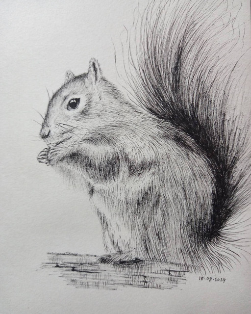 I wanted to use my technical pens. I probably could have chosen a more interesting subject than a squirrel, though.Related content