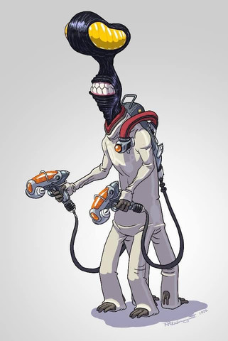 This is a great piece, Mike. I especially like the "To BE, or NOT to BE" pose he has. An alien explorer doing Shakespeare. Nice.