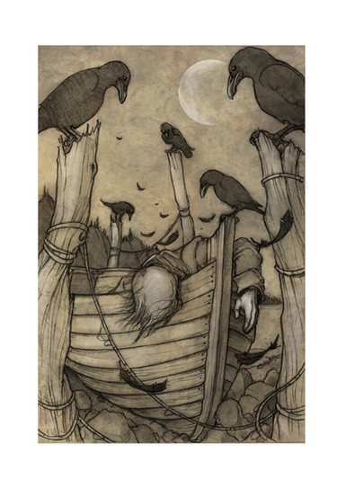 Commission for *nuancecm on the "crow" theme. I came up with this image, where the crows could be seen as the souls of those which were hanged there... Or maybe it's just some random crowsPen & ink, tubular pen, washed ink on paper (13cm x 19cm).