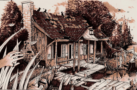 Great drawing. When I first saw it, I thought of Faulkner's The Sound and the Fury--the house reminded me of what I pictured the Compson home would look like.
