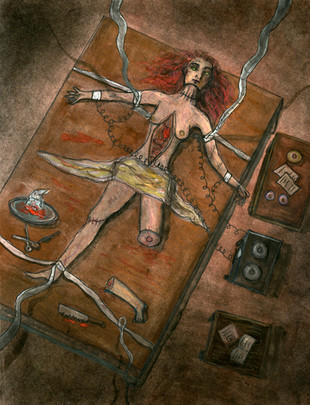 Great layout and use of color! Your eyes are drawn to her hair first before realizing the strangeness of the piece. Brilliant, and congrats!