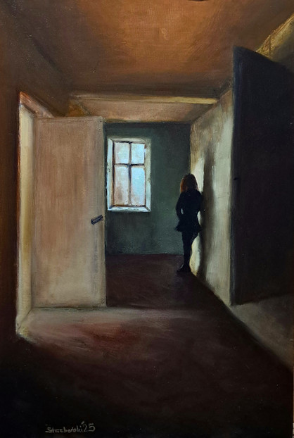 Well it's been awhile but I'm back. Continuing in the "interior scenes" vein.Oil on canvas (60 x 73 cm)