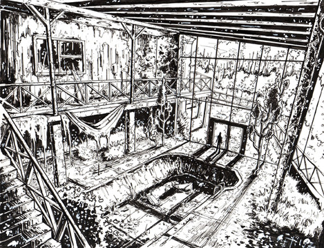 Love the detailing and the line work....such a sad looking courtyard.