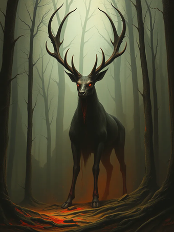 #digitalart #characterdesign #magic #fantasyart #digitalpainting #horror #creature #deer #ai #dreamup #forest #mythical #creepy #mythology #ai_art