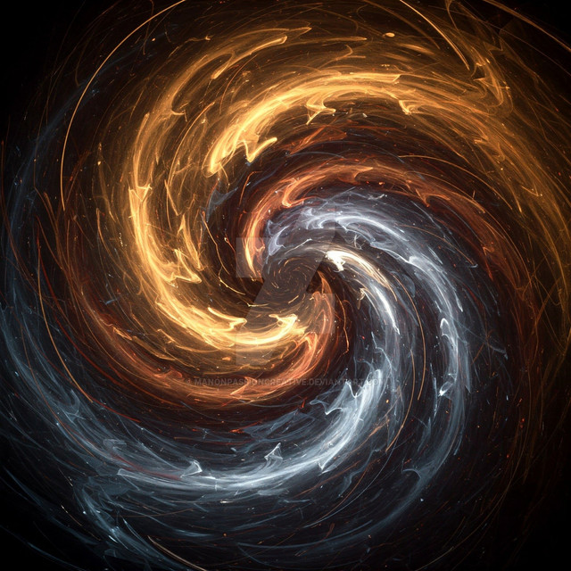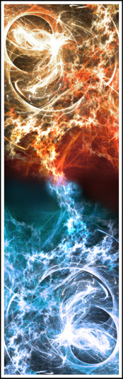 Behind every piece of art, there is a story to tell, but there's just not enough time to tell them all. This picture reminds of heaven and hell, hell being ruled by flames and heaven, being light and fulfilling and they break out in war, just my opinion. This art could go far in a competition