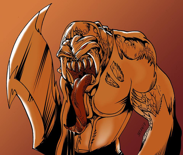 "Sorta like a shaved gorilla, except with horns, a big head, lots of teeth and harder to kill. Don't get too close or they'll rip your fraggin' head off..."