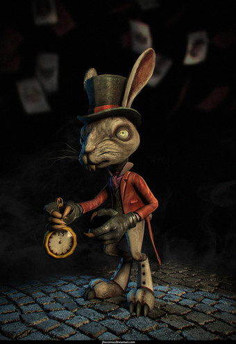 I will post a scarier, more out-of-this-world concept of the White Rabbit I did at the very beginning of the project later on.