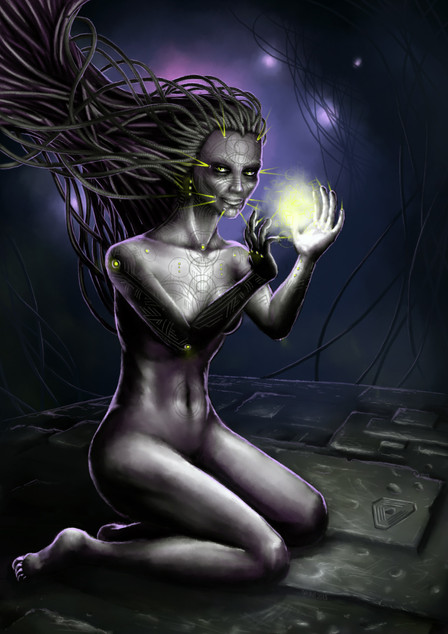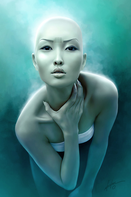 Lots of blue in this, but I like blue. it's like a combination of your amalgamate work and Last Race... only a little more space-ey. Her expression and her eyes are just... fantastic. I haven't seen anything so beautiful and also strange in a long time. you almost cannot look away