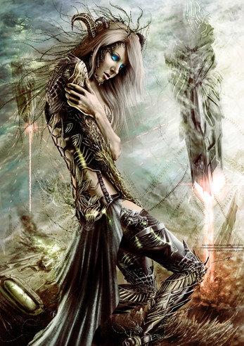 I took a look at your step-by-step for this piece; that's quite a lot of work you put into it. I do wonder how long a piece like this normally takes you to do from start to finish. In any case, the final product is really cool, and quite memorable. At first I wasn't sure about the aged painting style you've given it, but the more I look at it the more I like the effect. Very nicely done.