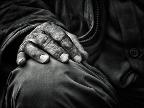 You really captured the individuality of the hands. The lines, the wrinkles, the scars, the nails: they all tell the unsung life story of the man in the photo. Excellent shot.