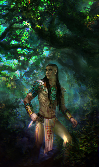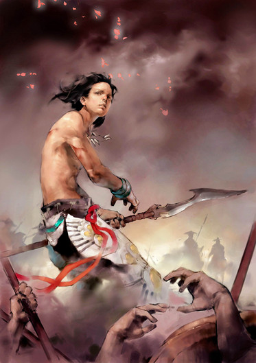 Reminds me of the Gaelic hero Cu Chulainn, especially with that spear (Gae Bolg)