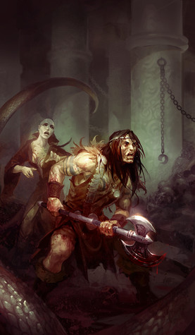 Kinda cool idea, if I am thinking about it right. The hounds and beasts are men, the snakes are man's temptation. Just shows how those who give in to their desires and beastly nature can tempt the minds of men until they finally fall to be devoured by madness. Or maybe I'm just looking in too deeply