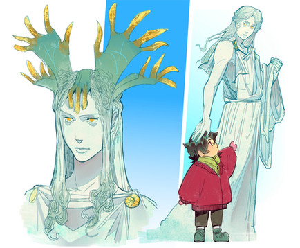 Meet the family of Arza Melan, the lord of Western Bagarat. Most of them don't even have names yet, but I suddenly felt the urge to draw them so here we are.Should I make more of these?