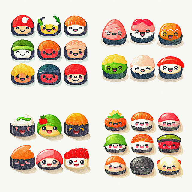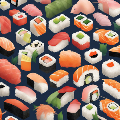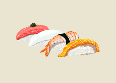 Instagram - Store - If you enjoy my art, consider supporting me on patreon <3 - Etsy!!Messing around with cute little sushi c: I'm still not happy with the background color, I just couldn't get it right and ended up settling the blue cx