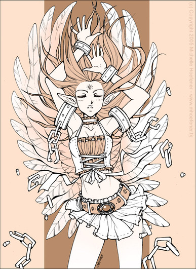 Both the hairdo and the wings are so impressive 0.0 Your stuff is amazing ^^