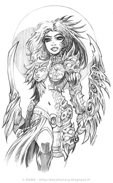 I am blown away by your work, & this piece, in particular, will haunt my dreams...I think this character needs to be drawn & drawn & drawn, again! In fact, I think it would be fantastic if you would/could animate her (Flash, CG, etc); I think she'd gather an incredible fan base. Has she been named?