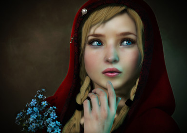 Red Riding Hood appears absolutely beautiful! I love how you can zoom into the picture and view Red Riding Hood's face. I noticed that her eyes changed color and you can see the small snowflakes on her eyes. Also, whenever she exhaled, you can see her breath. These little things like her eyes and her breath made Red Riding Hood appear more realistic. The music fits perfectly with the snow animation giving it a dark, mellow feel to the animation. This took my breath away. It has such originality and realistic feel to it.To be able to create this animation is truly amazing. I probably couldn't do this in my lifetime. Your hard work paid off and created a masterpiece so thank you for your hard work!
