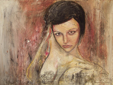 The expression of the face and body is matched only by the thick paint creating that elusive feeling of more. The natural skin tones contrasted and somehow flowing together with the bold reds create a stare-worthy image I can't take my eyes away from. The mouth and chin and that wisp of hair are excellently done.