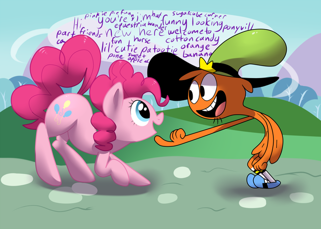 whooaaa, i can already picture how Pinkster Trickster right there would be in the lands in Rayman Legends⦠As Rayman & Pinkie Pie tagging together (and to mutiply all the slapstick chaos, i presume/hope Globox & teensies with thier silly 'ow' sounds tag alongside as well!) and go through all those surreal lands slapping enemies, lands ranging from creepy castles, medival dragons, toad & beanstalk empire, to underwater mansions, gigantic kitchens with mountains of unfinished food, to a giant armored toad brute, to giant luchadores chasing the heros with cakes & skeletons in the way, to minotaurs riding shieds who spit fire, to the land of zombie grannies! I could only imagine the shenanigans & comments Pinkie & Rayman would do through the whole amazing journey!