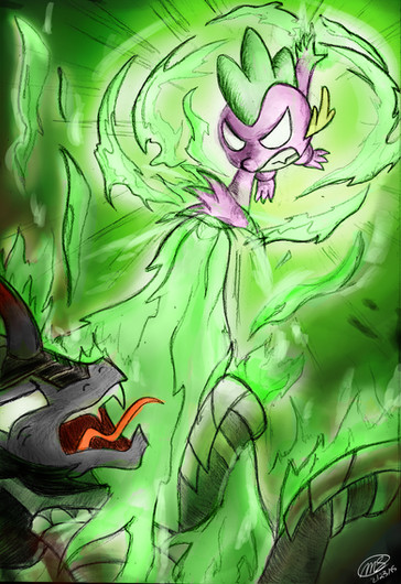 #battle #dragon #fight #green #mutant #parco #piranha #spike #versus #mlpfim #fire