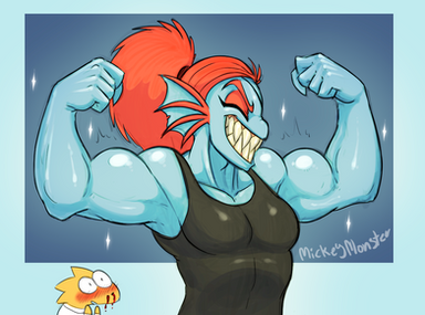 Undyne suplexes a boulder, just cause she can.
