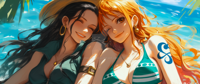 #anime #fanart #onepiece #nami #digitalart #animegirl #wallpaper #beach #animefanart #portrait #digitalpainting #animedrawing #nicorobin #robin #onepieceocgirl