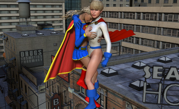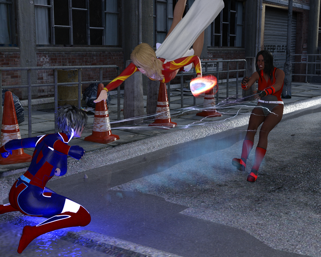 Just a simple punching picture with POWer Girl and WWMainly DAZ stuff with TerryMcG's costumes.