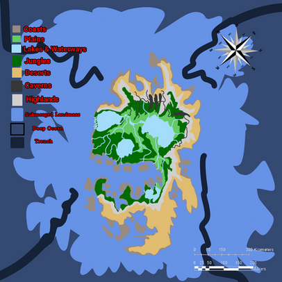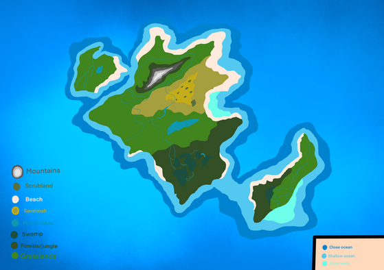 Bahari Squillos live beside the ocean. Their village is located in a large groove inside the cliff face of the island. A large waterfall decorates the center, fed by a large river coming from the marsh land and leads into a lake-like pool below. A couple other, smaller streams feed into the freshwater pool as well. Along the sides of the cliff there are plenty of jutted rocks and mini caves that can be used as Squillo homes. Right in the center of the waterfall, a large stage like stone juts out and separates the fall into two. That leaves a doorway to a large cave that can be used for more homes, or possibly a mansion for the founder. Plenty of palm trees, boulders and sand decorate the outer rim of the groove, which leads out onto the beach. These squillos are best for their ocean fishing. They create their own simple fishing poles with sticks and grass. They could also be considered the most brave and daring of the villages. A favorite sport is diving from the stage-stone and into the pool. They are also best known for their jewelry. They make necklaces of shells, pearls, and the occasional rare gem. More importantly, with all their sand, the blacksmiths can make glass. Glass isn't found in any other village unless traded or sold. A favorite delicacy is crabs, clams, shrimp and lobster. They market their food and clothing to the other villages.
