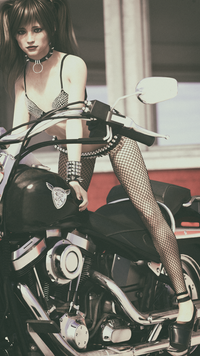OH my goodness, is she ever sexy on that bike. Where do I start...? First off, this work is great! Her face is like a sexy,mdevious angel, those lips....mmmmmmm, so kissable .