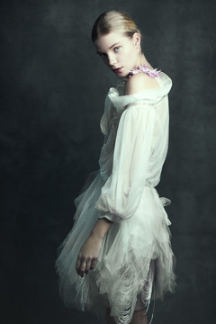 -- Composition, lighting, model and dress makes this a wonderful portrait.