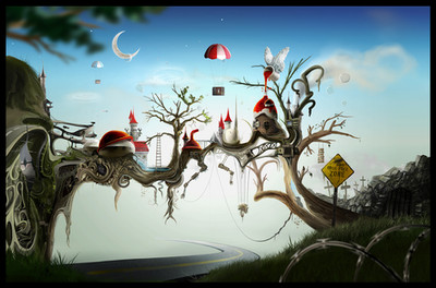 It's one hell of a piece tho mate, strong rich aesthetics as usual and I especially love how the perspective pulls you in. Makes you feel like you're standing down there in the mud looking up at this epic display in the sky. Top work!