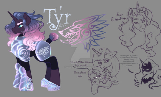 About: Eventide is amazingly gifted with magic, and enjoys reading encyclopedias as light reading. She's already written multiple thesis that have greatly advanced ponykind's understanding of magic, publishing various studies about foals of inter-species parents, including her friends Kaleido Burst and Rhubarb Pie, right now she's studying the children of alicorns, but has only been able to observe her older sister and cousins, but is an eye out for rumor's of a mare with a glowing blue mane and over-sized wings.