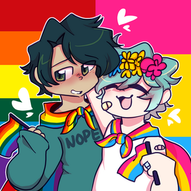 My friend gave me motivation to draw a canon ship in Arcane Hero, so I sketched it, and then I drew it out fully. So here's the result, this took three hours and it was a really nice three hours. I love these two boys so much, and I'm really proud of this as well as my style currently. I've been trying to experiment more with it, and now my style is taking a turn that I really like. And I hope you guys do too, here's some more Pride month stuff for you guys uwu