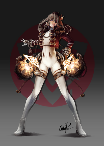 Wonderful OC.Β I'm getting vibes from Arcana Hearts from her.