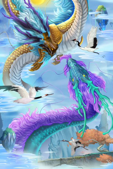 #airborne #artwork #asian #celestial #chinese #clouds #colors #creature #culture #detailed #dragon #dreamy #enchanting #fantasy #flight #folklore #illustration #intricate #legend #magic #mystical #mythical #night #pastel #playful #sky #traditional #whimsical