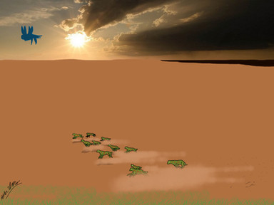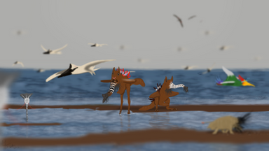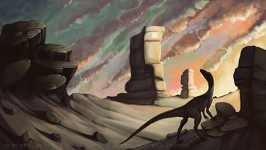Inspired red by that BBC incident just yesterday2 coelophysoids run from a volcanic eruption