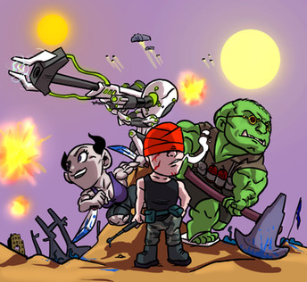 This was started traditionally as a 3.5 inch or so sketch, (*pssst! Joe. I'm pandering to your sensibilities*) and then brought into the computer to make it a more presentable image. I tried to have a playful but slightly morbid entry that sort of mimics the vibe from some of Bobby Chiu's work.