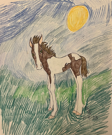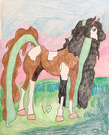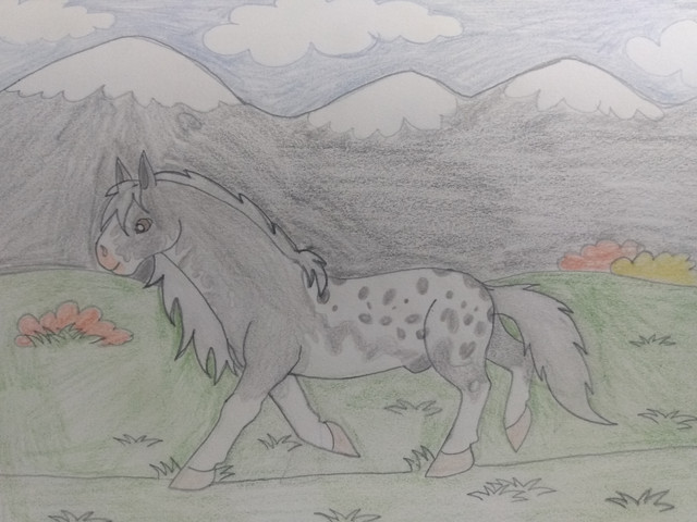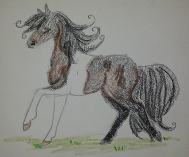 Angel is my new horse oc. I don't really have a backstory for her yet. The black patches on her shoulders are supposed to be wings.Related content