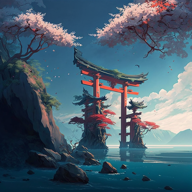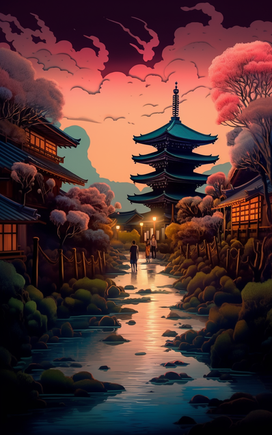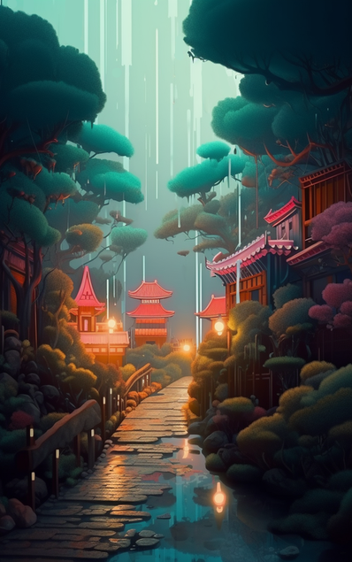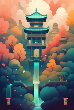 #architecture #asianarchitecture #brightcolors #landscape #landscapescenery #oriental #orientalfantasy #pagoda #river #temple #tranquil #village #asianlandscape #aiart #aiartcommunity