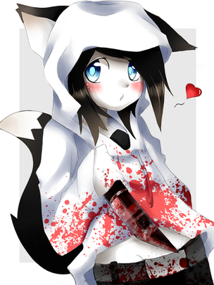 Likes: drawing,writing,the dark,scary stories,cats or really anything cute,stuffed animals,hugs,cookies,hachets,wearing hoodies,T-shirts,and sweaters,reading,watching horror movies,senpai,dark or pastel colors