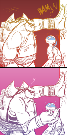 Look at him. Heβs just a big sweaty idiot turtle with anger management issues. Why is he my favorite?????? Oh right because heβs a big sweaty idiot turtle with anger management issues.