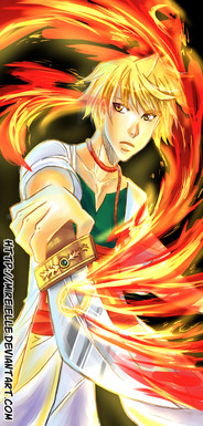 Magi fanart <33 Β Oh it's awesome!!! Β Now if only he would act this confident looking in the manga xDDD Β Nice work with his scarf and sash spinning around with the flames working into the background.Β