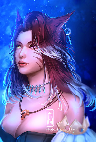 This is visually stunning but somehow it still leaves me indifferent. Maybe I'm just cynical. The hair and that white fur(?) thing are visually interesting but the face just makes me go "meh, that's too doll-like and smooth".