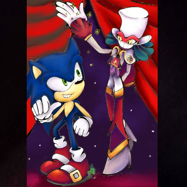 A totally magnificent drawing of Sonic in that costume and with the staff, top hat and mask! His pose and expression are so outstanding!