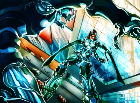 Wow. I'm always speechless after seeing each shot. i wonder when the future is coming. ever since we were kids we thought we'd have hover cars by now, lol. Anyways, once again your colors, lighting and detail are just amazing. My question is how do you keep going? I mean, don't you have to illustrate top notch stuff like this throughout the whole game, including the frames for cut scenes and battles? The amount of work you are doing is just over my head, if so. My favorite parts of you art are always the character designs and your background. That's basically the whole picture anyways. :3
