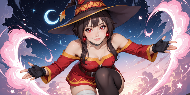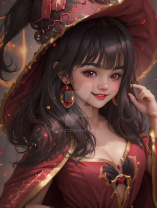 #anime #magic #witch #magicalgirl #digitalart #animegirl #adoptable #beautiful #blackhairedgirl #exploration #reddress #sexy #sexygirl #megumin #meguminkonosuba #megumin_konosuba