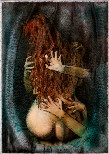 The detail on that bat is wicked! It almost looks as if it could unfold itself and wrap around the girl. I love this image! Nice concept and execution. The only thing that throws me off a bit is the moon. Its a little big and close. Almost looks like a pearl. If it were a lil smaller and further up in the corner I think it would work perfectly! Overall Beautiful Work!