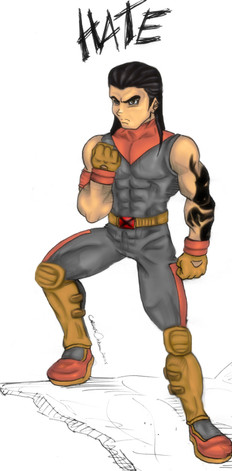 Su poder es una garrade hueso retractil en medio de sus muñecas y una TK y TP comparables con las de su madre