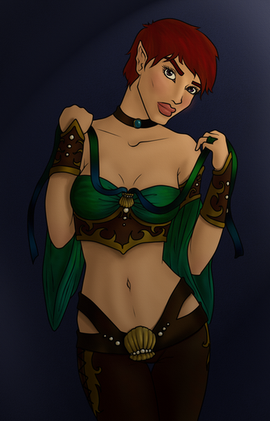 There is a dwarven MALE prostitute at The Rose in Dragon Age 2, but no female. In fact there are no female dwarfs in the entire game! A shame!Aaaaaaaaany way. another dwarf lass, and this time she has a friend ^_^